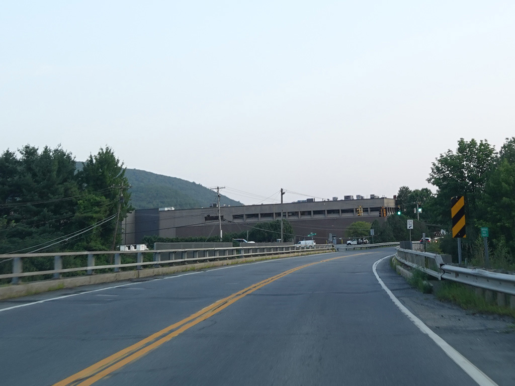 Rockingham Road runs south as a two-lane undivided road. Coming into Bellows Falls, it changes names to become Rockingham Street.