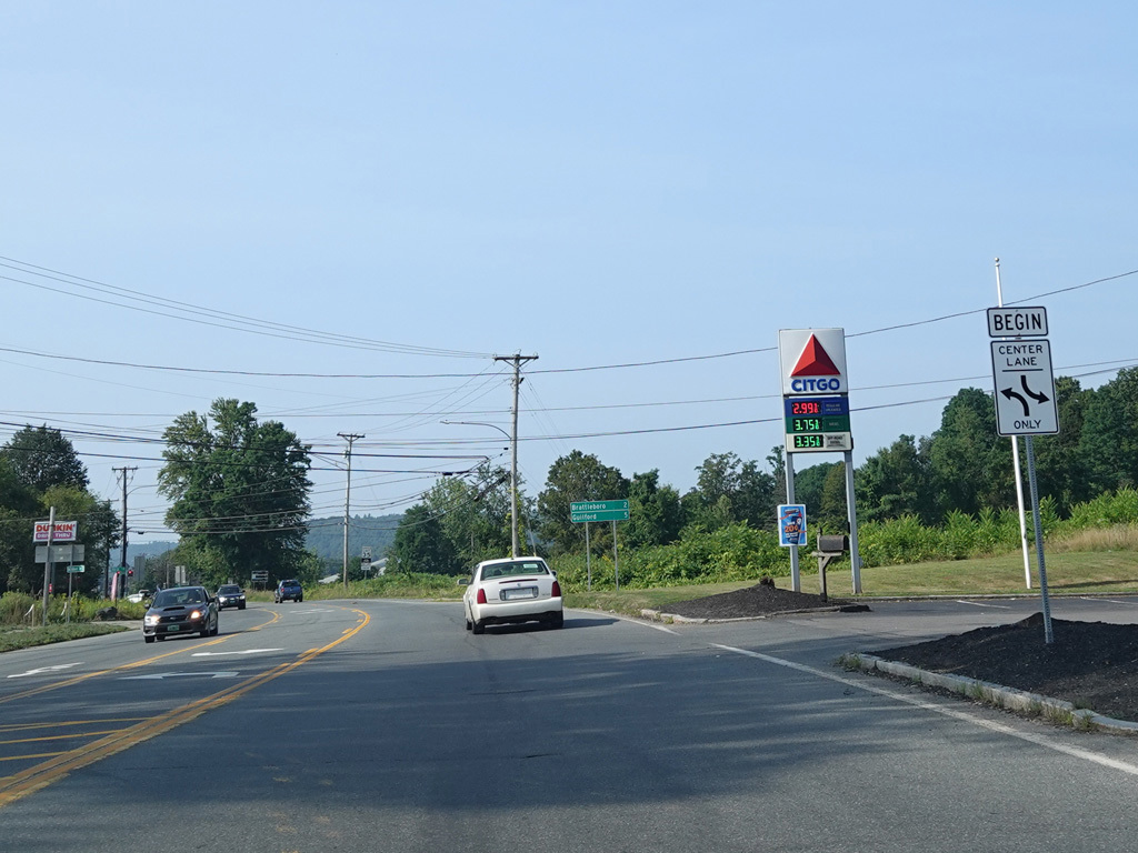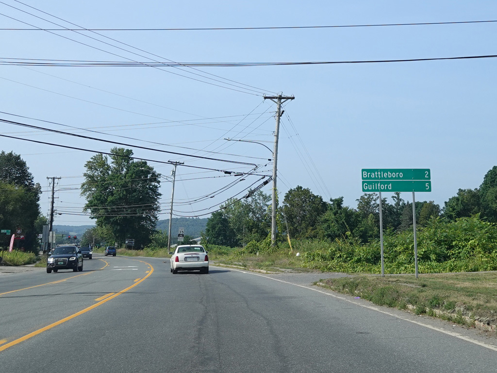 VT 123 begins on the left here. It leads to a bridge across the Connecticut River to New Hampshire, leading to NH 12.