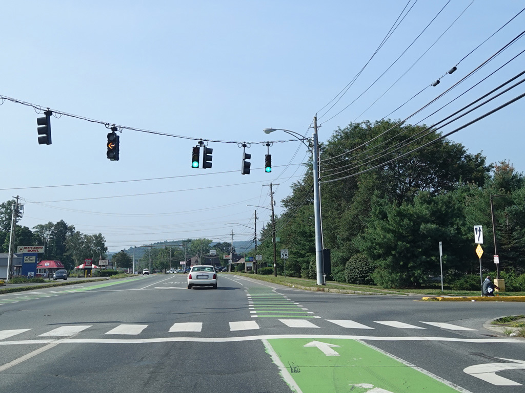 Coming into Brattleboro, US 5 changes names to become Putney Road. It passes over I-91, but there is no interchange. Immediately thereafter, there is a traffic light at Old Ferry Road.