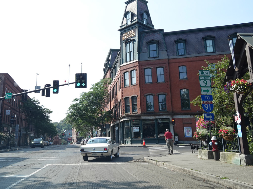 Park Place ends at Linden Street. Bear left to stay on US 5/VT 9. Turn right for VT 30, which begins here.