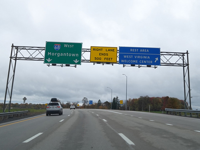 I-68 is an east/west interstate highway through the Appalachian Mountains from I-79 in Morgantown, West Virginia, to I-70 in Hancock, Maryland. It is designated Corridor E of the Appalachian Development Highway System, a network of highways intended to provide better access to and from Appalachia, thereby promoting economic development in the region.